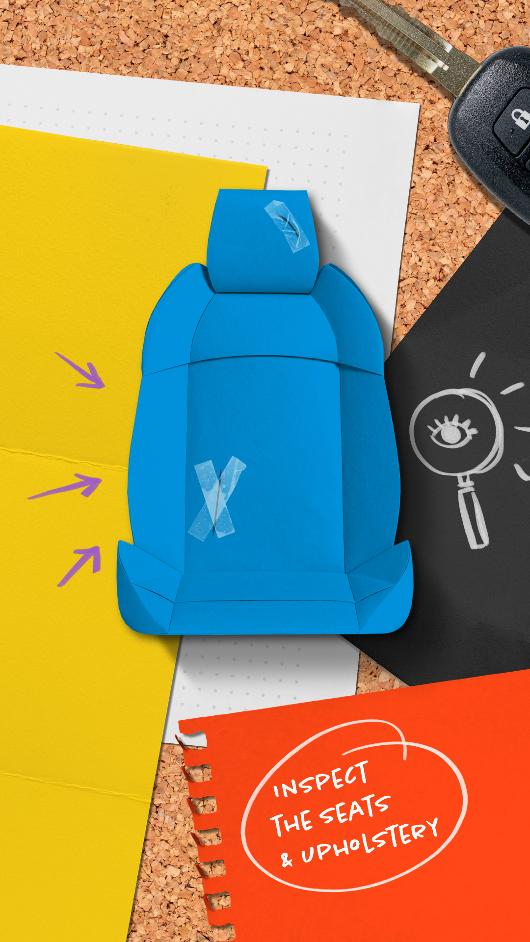 Paper will be used in creative ways, from ripping and crumpling to form transitions, to introducing origami-style cars, tires, and seats. These assets will help illustrate key concepts discussed in the videos. This approach adds visual depth and energy, with opportunities for the paper elements to interact with the story. For example, a car bonnet might open, or a tire could roll away.